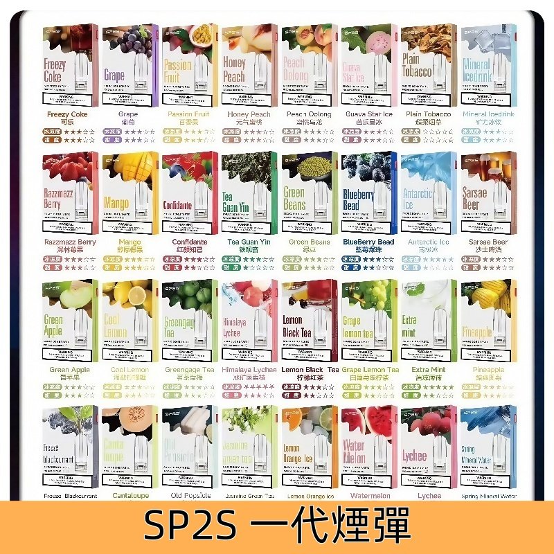 SP2S電子煙致力於為用戶帶來最優質、最安全的吸煙替代品,無論您喜歡涼爽的薄荷還是濃郁的水果味,SP2S一代煙彈都能滿足您的味蕾需求。SP2S 煙彈超過30種不同口味,從超涼到不涼,SP2S思博瑞每一口都是精心調配的藝術品,盡情探索vape極致口感。